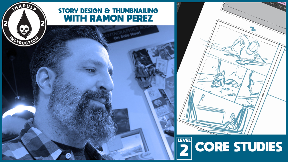 Learn Ramons techniques and theories for Storytelling and Thumbaniling from a comic book script (From his HIT SERIES Stilllwater!)! Watch him Thumbnail two comicbook pages, step by step, explaining everything he does as he goes. He will cover topics such as composition, page design, discovering the needed shot, and all aspects of comic book storytelling. You'll also learn about the software and digital media he uses during "TOOL TALK."